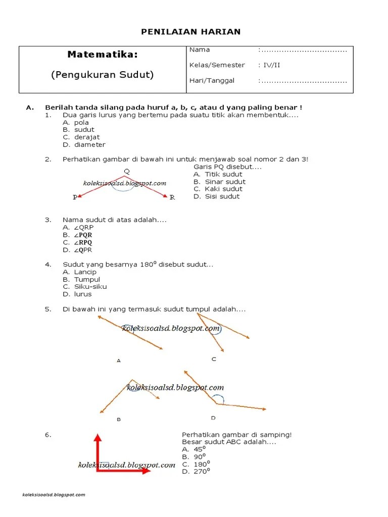 Soal sudut kelas 4 k13, soal pengukuran sudut pada bangun datar kelas. Dua garis yang bertemu pada satu titik akan membentuk. Sudut terbentuk oleh dua ruas garis yang saling …. Play this game to review mathematics. Contohsoal nomor 1 #pengukuransudut pada #bangundatar (kelas 4 bab 6 k13 dan edisi revisi)ayo mari bergabung di sinotif online .